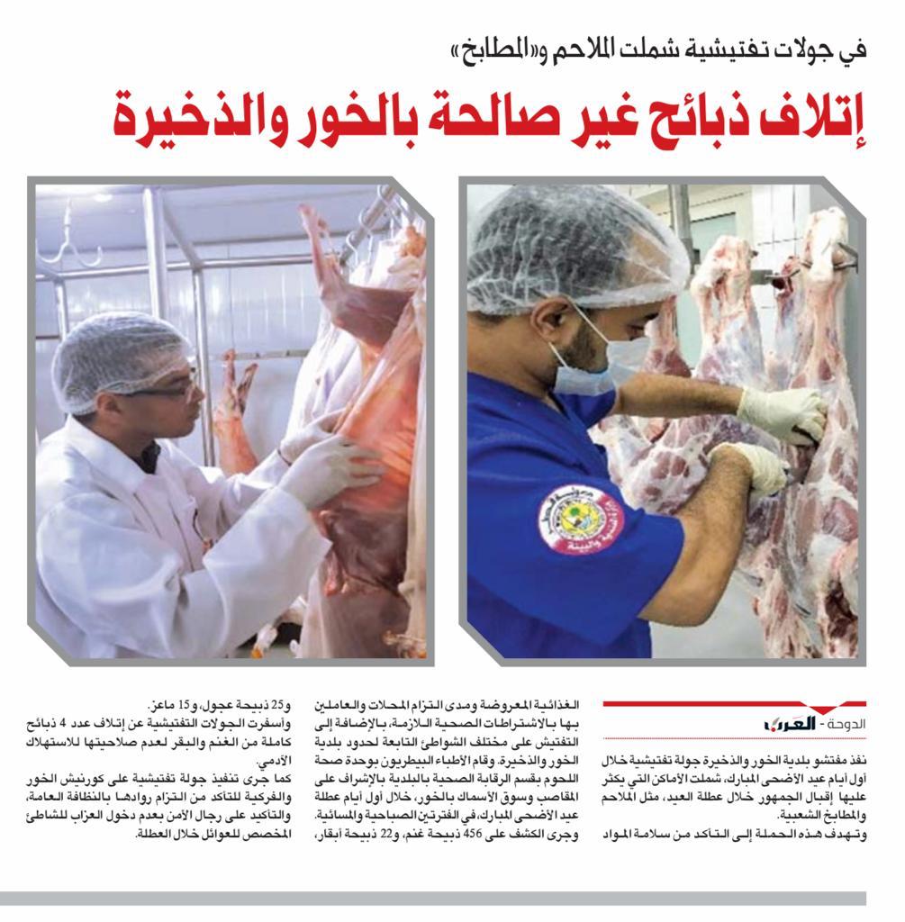 وزارة البلدية والبيئة Mme On Twitter وزارة البلدية والبيئة ممثلة ببلدية الخور والذخيرة تنفذ جولات تفتيشية خلال أيام عيد الأضحى المبارك شملت الملاحم والمؤسسات الغذائية للتأكد من سلامة المواد الغذائية المعروضة والالتزام بالاشتراطات الصحية