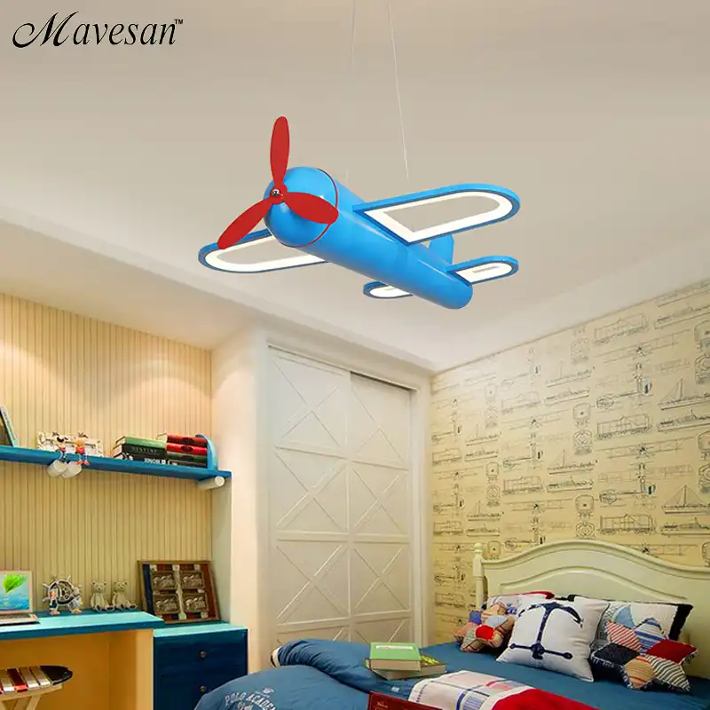 Led ضوء السقف للأطفال غرفة نوم الطفل الأزرق على شكل طائرة التحكم عن بعد مصباح الإضاءة Lamvillage Lumaria Avize أضواء السقف Aliexpress