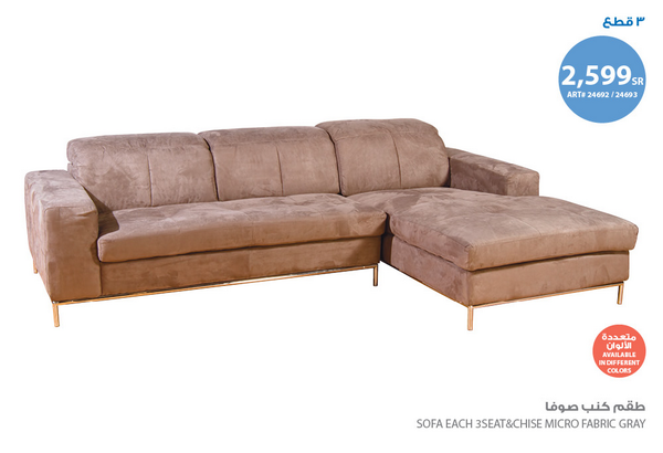 أريكة استرخاء3مقاعد قماش بيج بني داكن Micasa العلامات التجارية Saco Store