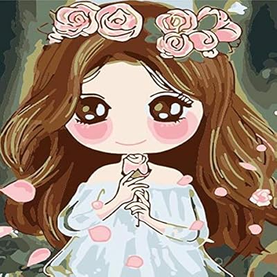صورة كرتونية لطيفة على شكل فتاة وردية تبتسم ورسومات رقمية بالأرقام من الأكريليك على القماش لديكور المنزل وغرفة المعيشة والممر 50x60cm Amazon Ae