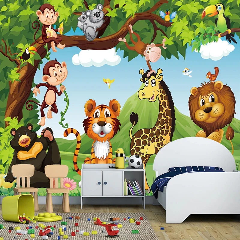 العرف صور جدارية خلفية 3d الكرتون غابة الحيوانات العالم الأطفال غرفة الاطفال غرفة نوم طلاء جدران خلفية الأسد النمر القرد Buy خلفية جلدية خلفية غرفة نوم ثلاثية الأبعاد جدارية
