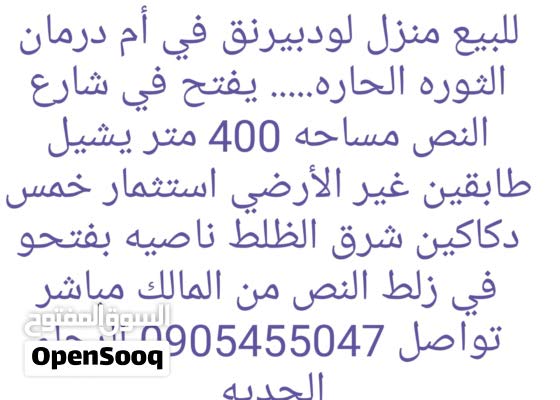 عقار بيت عمارات للبيع 300 م٢ الخرطوم أم درمان 127001042 السوق المفتوح