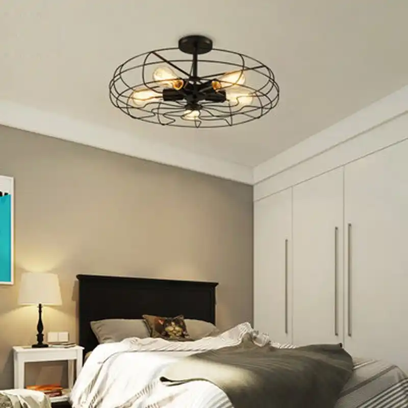 ثريا سوداء الحديثة الإضاءة الأمريكية قفص حديدي ضوء المصباح السقف تركيبات المطبخ Luminiare غرفة نوم غرفة المعيشة ضوء المنزل أضواء السقف Aliexpress