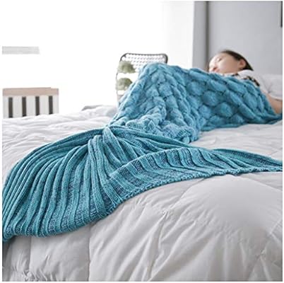 بطانية كروشيه للكبار من الكروشيه على شكل ذيل حورية البحر بطانيات ناعمة مريحة للنساء والمراهقين والفتيات وبطانيات كيس نوم للأطفال بوليستر ازرق 35x77inch Amazon Ae