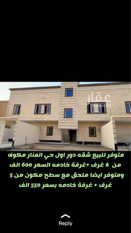 شقة للبيع في شارع الامام محمد بن سعود حي المنار الدمام الدمام 2755687 تطبيق عقار
