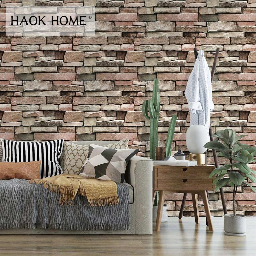 Haokhome حجر مركب 3d ورق جدران من الفينيل Pvc لفات الرمال رمادي البني الحجر الصخري الطوب الجداريات المنزل المطبخ الحمام الديكور Stone Wallpaper Stone Brickswallpaper Roll Aliexpress
