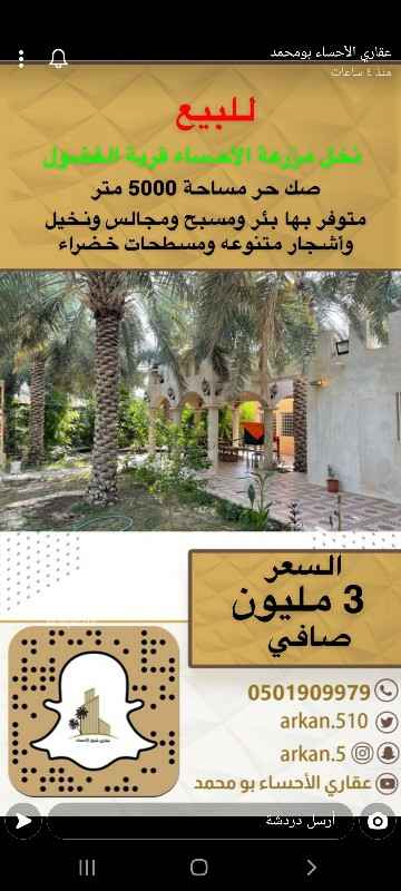 مزرعة للبيع في الهفوف تطبيق عقار