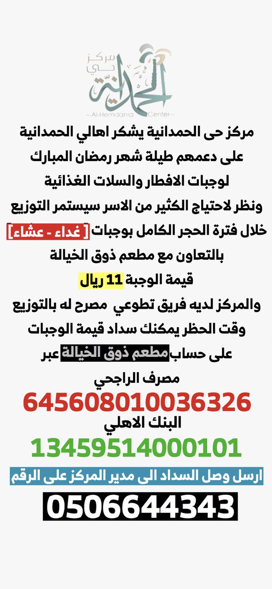 لايف الحمدانية جدة A Twitteren تبرع مطعم ذوق الخيالة Zouqalkhayala ب 1000 وجبة للاسر المحتاجة فى اول ليلة من ليالي العيد وقام مركز حى الحمدانية Hamdaniahalahya بفريق عملة التطوعي المصرح له