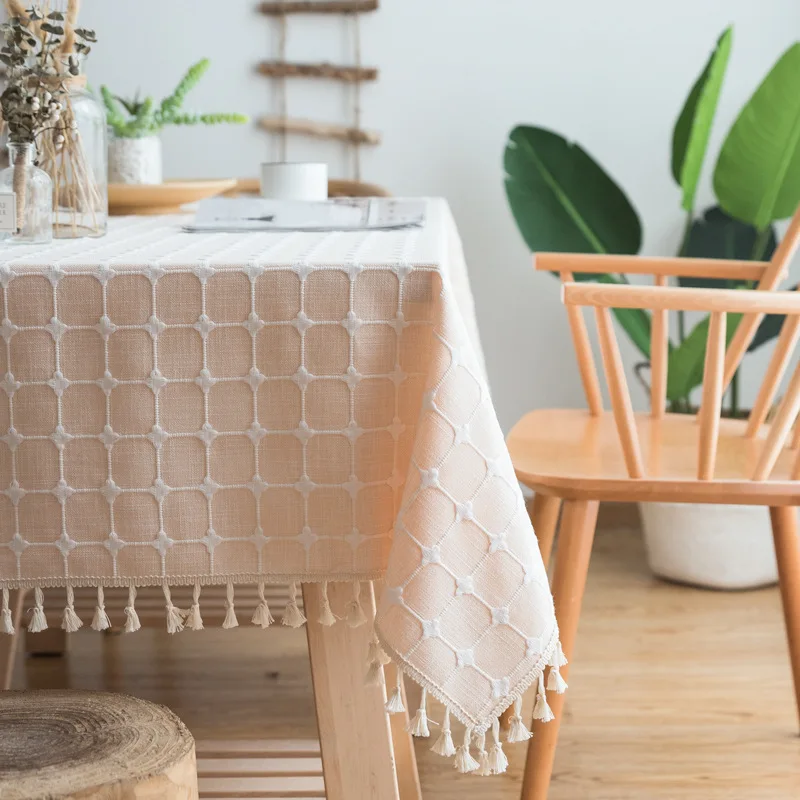 فدية الحديثة القطن الكتان مفرش المائدة المطرزة منقوشة مخطط مستطيلة طاولة طعام القماش شرابة تنحنح طاولة شاي لعيد الميلاد حزب رخيص