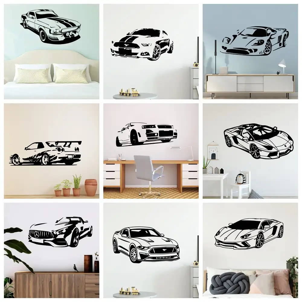ملصقات حديثة الرياضة سيارة ورق جدران من الفينيل لغرفة المعيشة ديكور الجدار ملصق غرفة نوم ديكور المنزل صور مطبوعة للحوائط جدارية ملصقات الحائط Aliexpress
