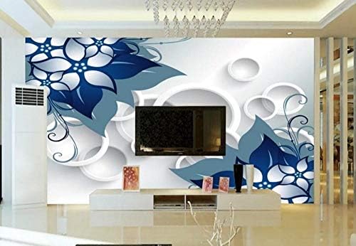 ورق حائط ثلاثي الأبعاد زهور زرقاء عصرية كبيرة ودوائر تجريدية بيضاء صور 5d مطبوعة قماش حريري لتزيين غرفة المعيشة خلف التلفاز وغرفة النوم والمكتب Amazon Ae