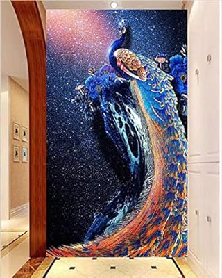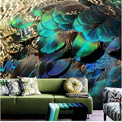 Ycry ورق حائط ثلاثي الأبعاد مطبوع عليه طاووس اليشم أزرق ريش لوحة جدارية تزيين الحائط صورة ملصق طباعة عالية الدقة زخرفة عصرية بما في ذلك المعجون Amazon Ae