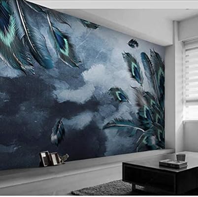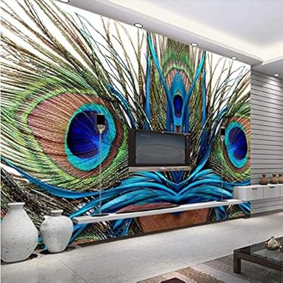 ورق حائط ثلاثي الأبعاد قابل للإزالة ولصق لوحة جدارية كبيرة ثلاثية الأبعاد مخصصة لغرفة النوم أريكة المعيشة تلفزيون خلفية طباعة ريش الطاووس الأزرق غير منسوجة صورة خلفية Amazon Ae