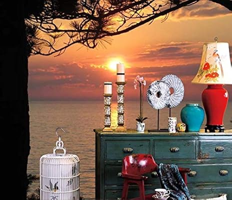 ورق حائط جداري ثلاثي الأبعاد منظر جداري في ورق الحائط منظر طبيعي لجول البحر وشجرة غروب الشمس ثلاثية الأبعاد جدارية لغرفة المعيشة ديكور صورة لفورة ورق جدران Amazon Ae