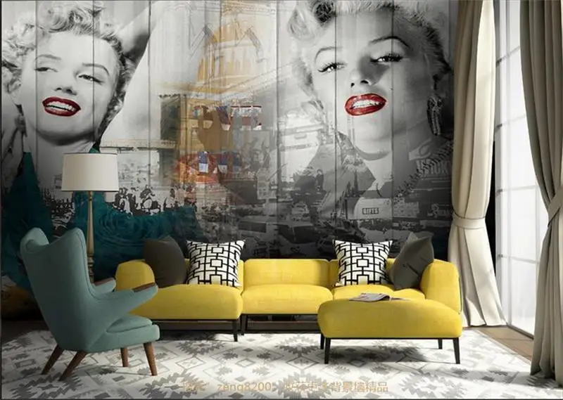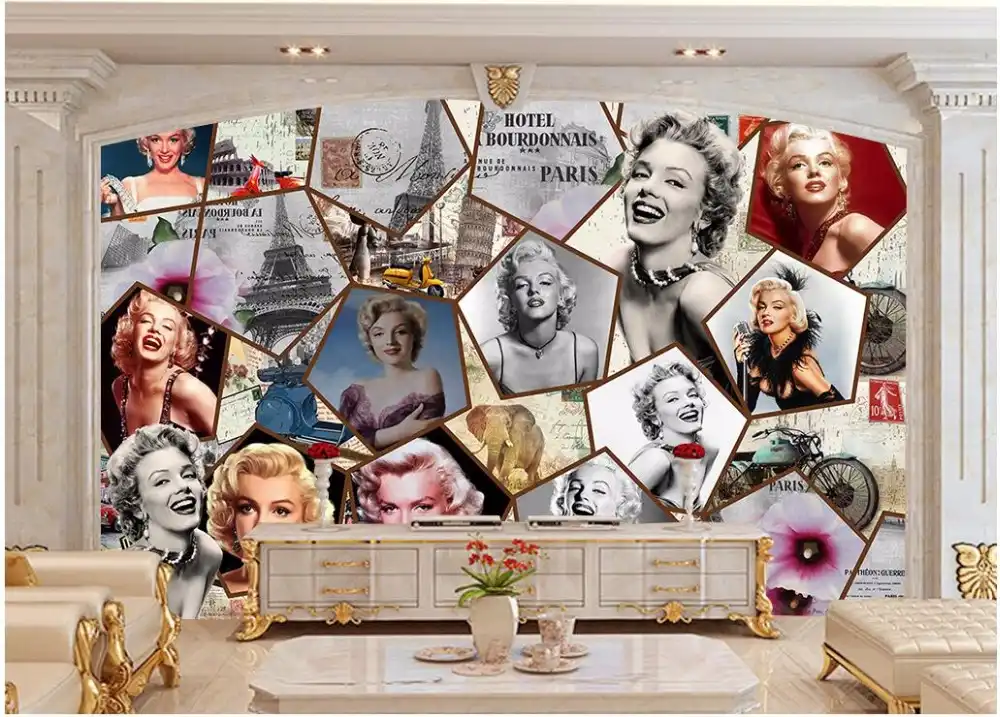 جداريات مخصصة ثلاثية الأبعاد مونرو مارلين صور خلفية جدار Papel De Parede أريكة غرفة المعيشة تلفزيون ورق حائط لغرفة النوم 3d Mural Wall Paperbedroom Wall Paper Aliexpress