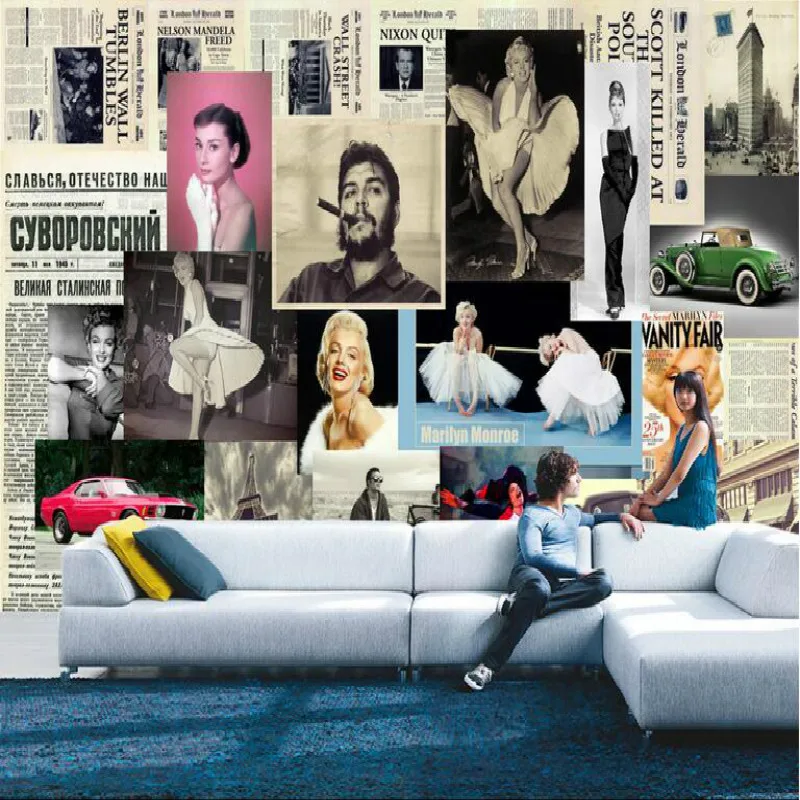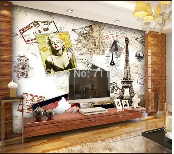 ورق حائط مخصص على الطراز الأوروبي مارلين مونرو لغرفة الجلوس غرفة نوم إعداد التلفزيون جدار الفينيل الذي Papel De Parede Aliexpress