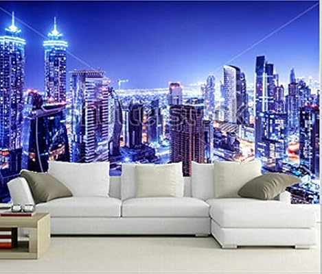 Tianxinbz لوحات جدارية ثلاثية الأبعاد مخصصة وسط المدينة مشهد ليلي مباني جميلة حديثة غرفة المعيشة أريكة تلفزيون جدار غرفة نوم ورق حائط Amazon Ae