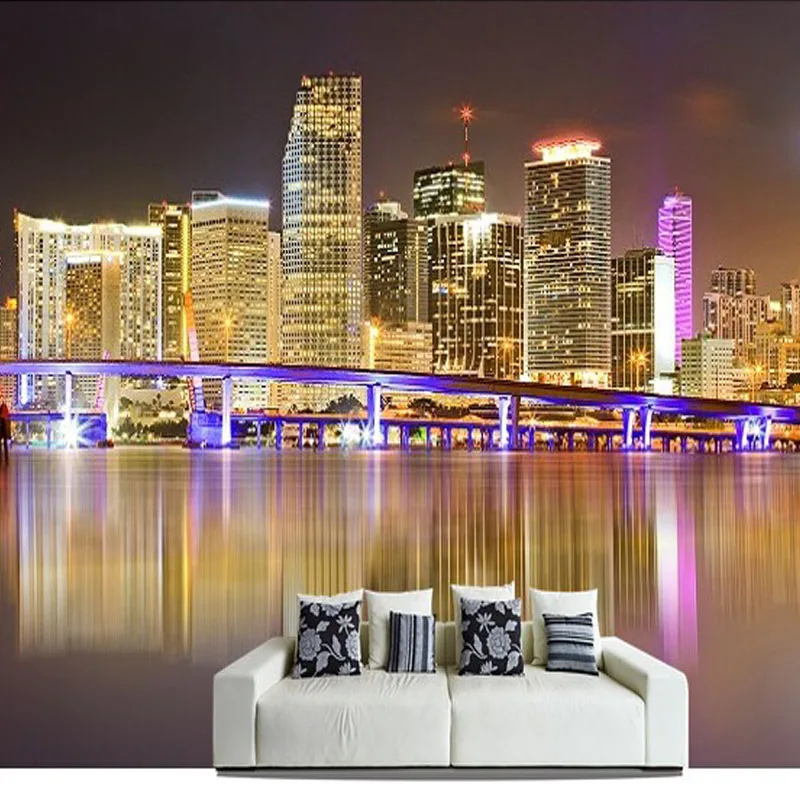 مخصص صور جدارية 3d خلفيات Hd مدينة ليلة جدارية حائط الخلفية الشاهقة بناء ديكور ورق حائط لغرفة المعيشة للجدران 3 D خلفيات Aliexpress
