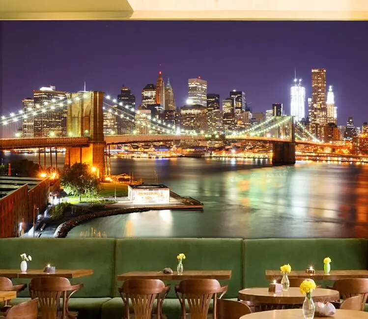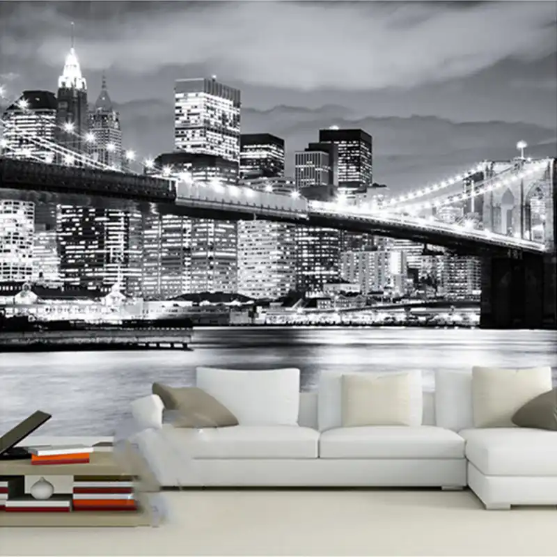 العرف جدارية ليلة عرض مانهاتن جسر نيويورك المدن الأوروبية والأمريكية أبيض وأسود غرفة المعيشة خلفية خلفية Backdrop Wallpaper Custom Muralliving Room Wallpaper Aliexpress