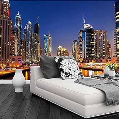 لوحات جدارية ثلاثية الأبعاد مخصصة بطباعة ناطحات سحاب في دبي في النهر ليلة المدينة الحديثة تصميم ورق جدران لغرفة المعيشة والأريكة التلفاز وغرفة النوم 200 140 سم من Rzdy Amazon Ae